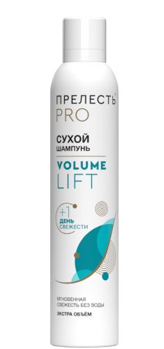 Средство для освежения прически и экспресс-очищения волос - сухой шампунь Прелесть Professional Volume Lift, его можно использовать как для ежедневного стайлинга для придания объема, так и для удаления жирного блеска с волос и кожи головы.